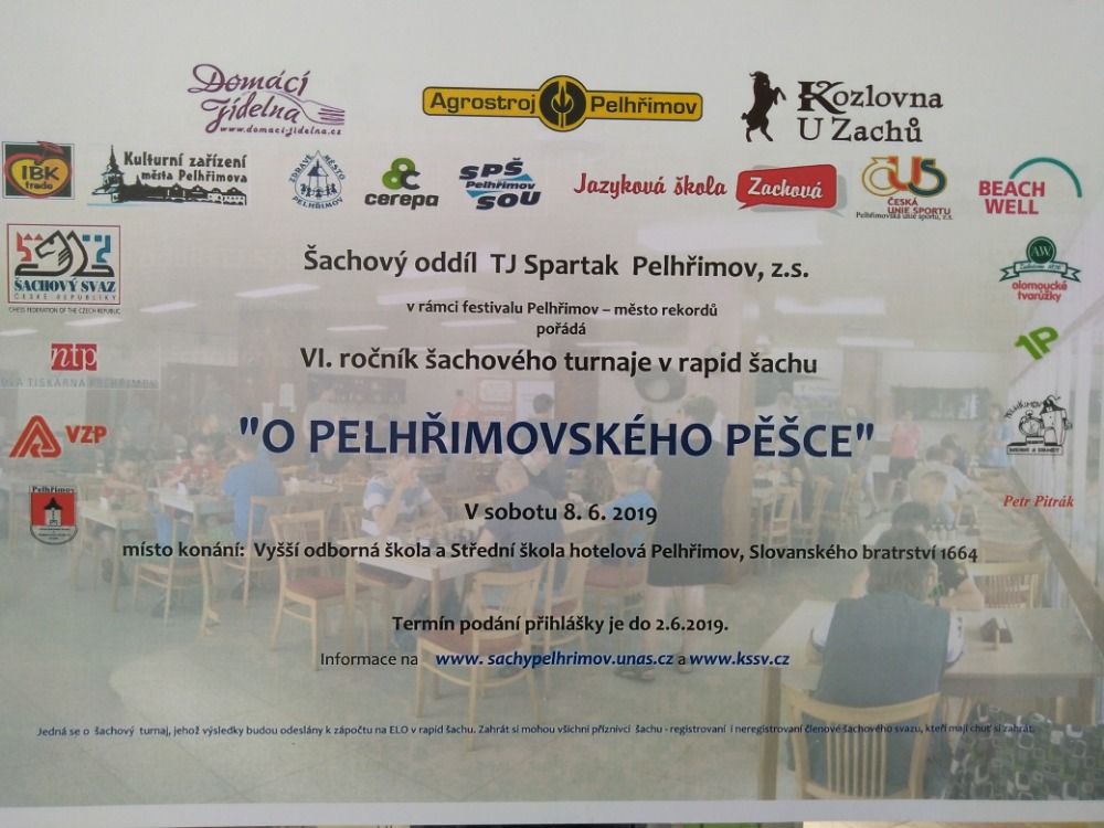 Šachový oddíl TJ Spartak Pelhřimov uspořádal v rámci festivalu Pelhřimov – město rekordů v sobotu 8. června už šestý ročník turnaje v rapid šachu pro registrované i neregistrované hráče a hráčky všech věkových kategorií, nazvaný „O Pelhřimovského pěšce“.