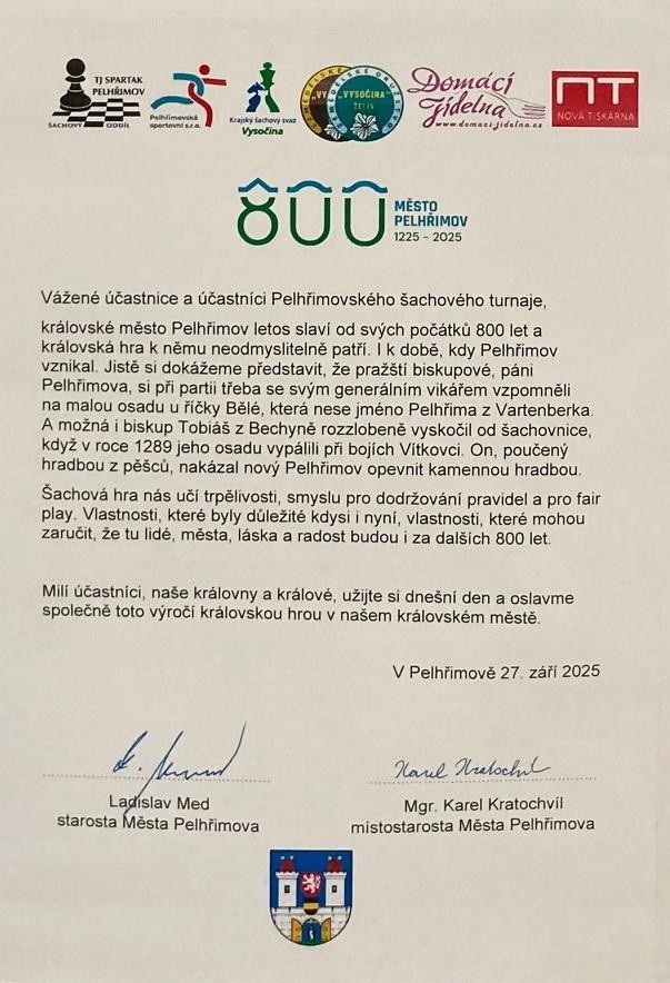 Fotogalerie: https://www.rajce.idnes.cz/kdrahus/album/pelhrimovsky-sachovy-turnaj-800-let-mesta-pelhrimova-27-9-2025